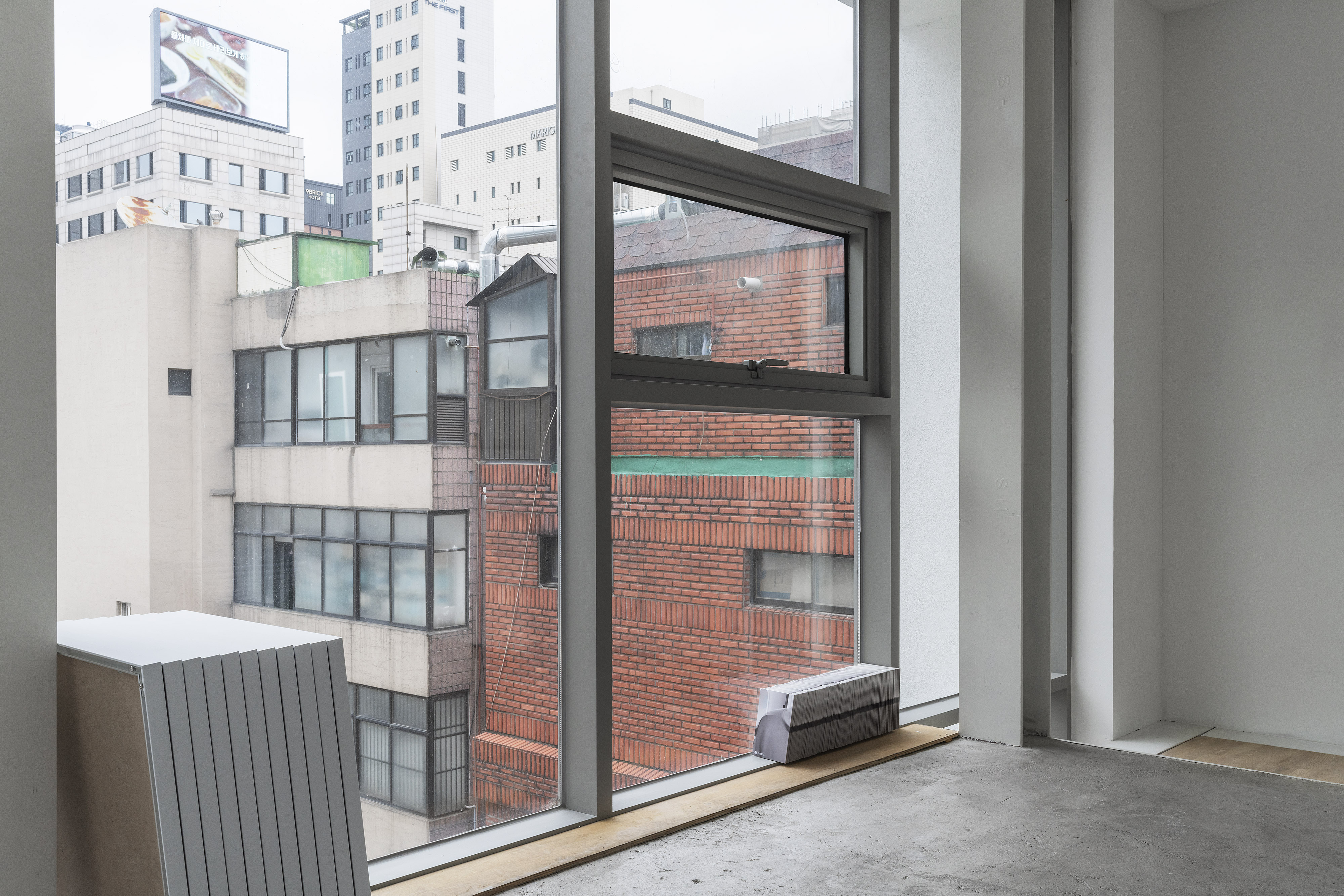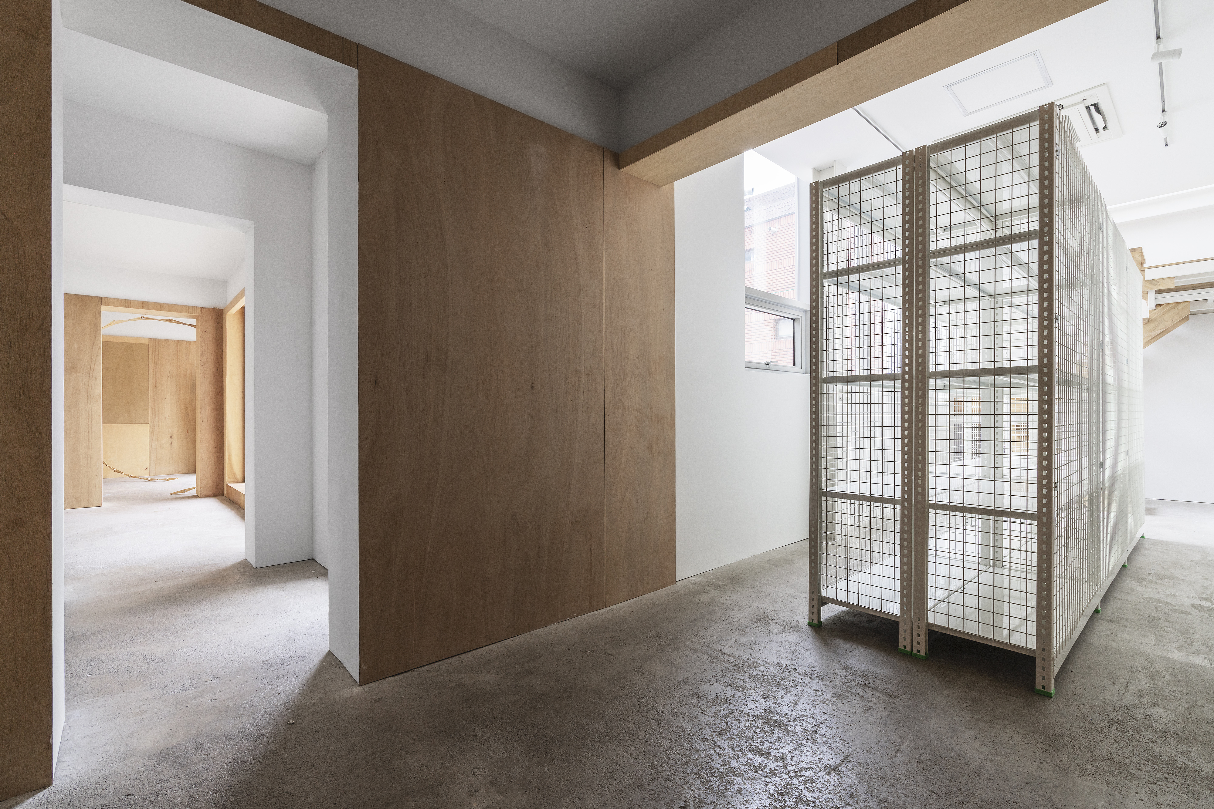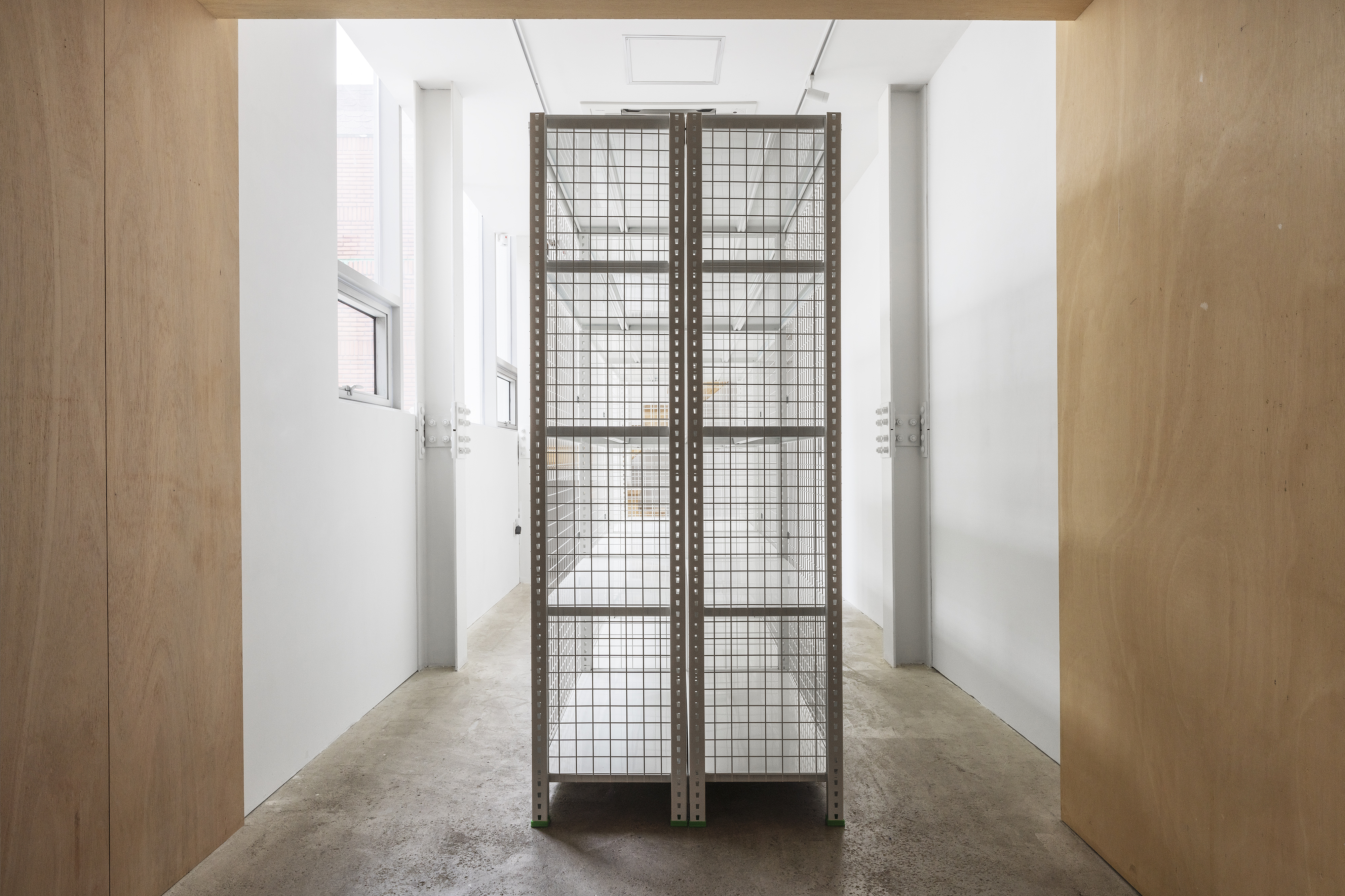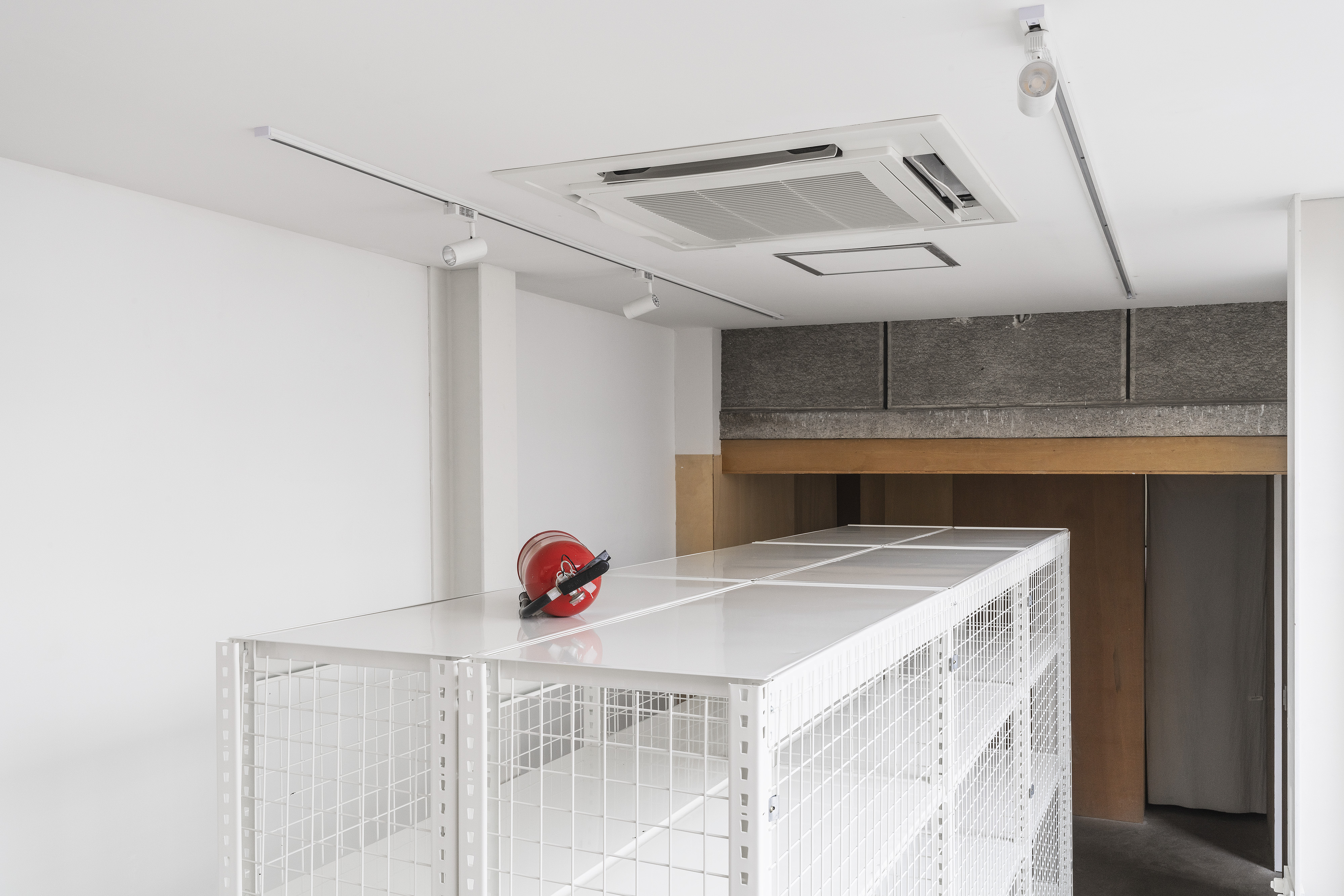 storage rack 90(w)x370(d)x220(h)cm, observation mirror (ø40cm),fire extinguisher, installation, dimensions variable