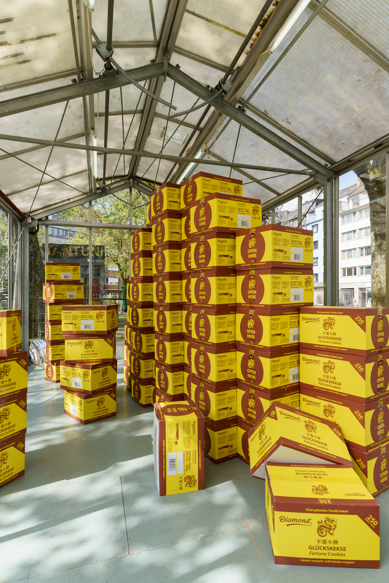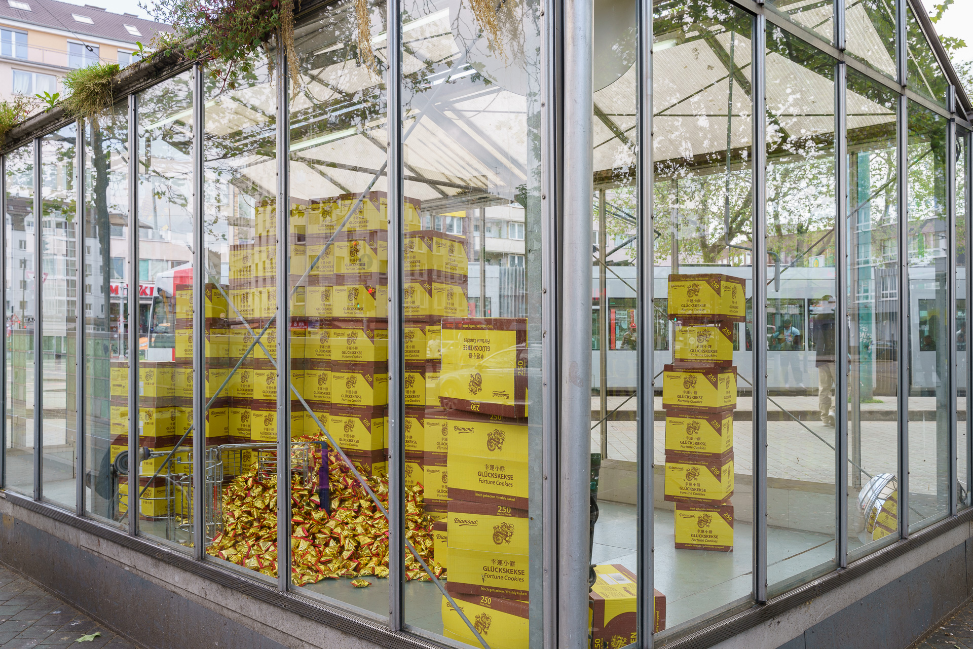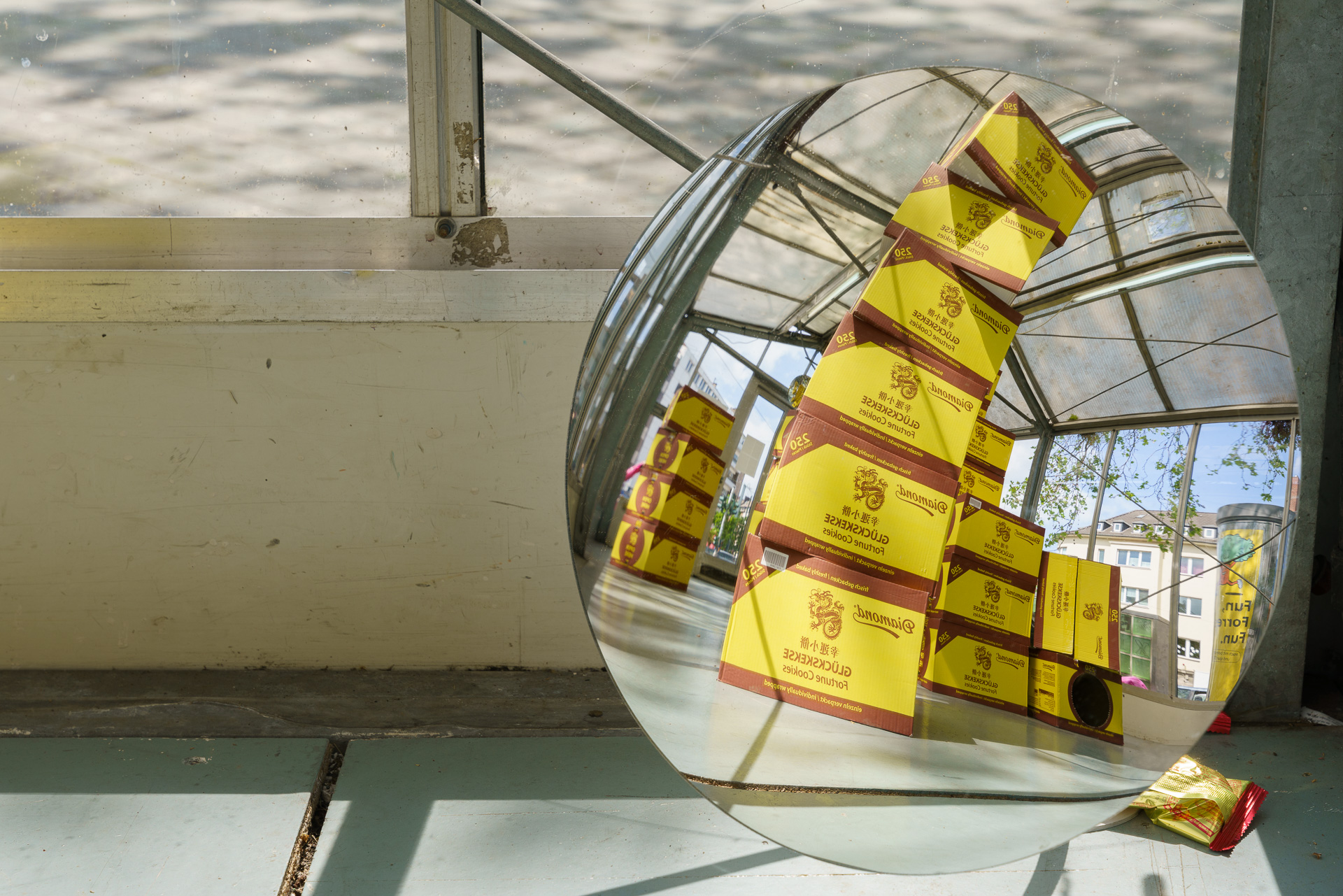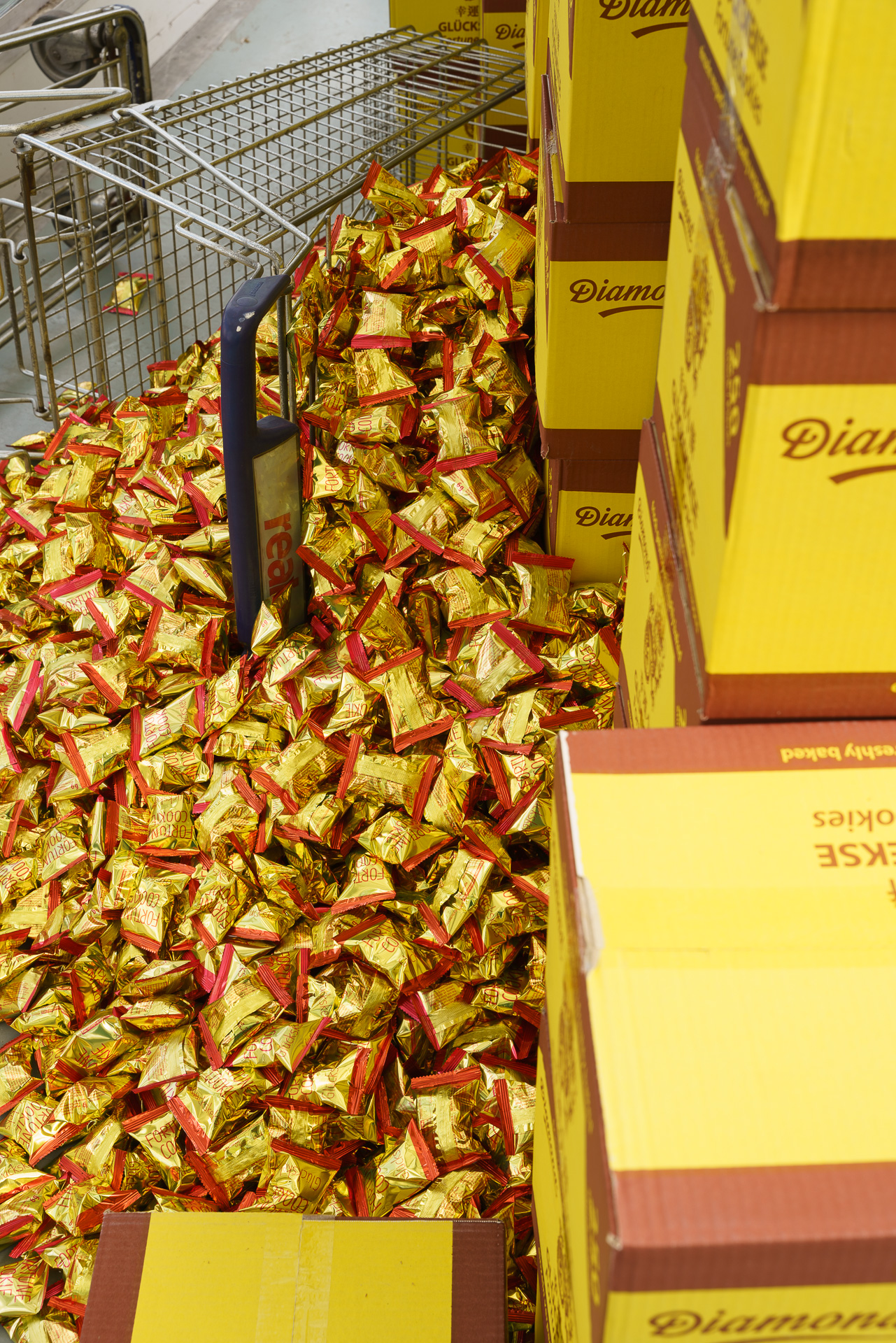 fortune cookie box, fortune cookie, observation mirrors, shopping cart,installation, dimensions variable